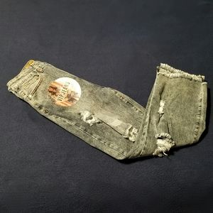 VIP Destructed Collection Jeans, with extreme distress details. Sculpting stretch, fading, frayed hem.