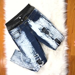 V.I.P. Distressed Lace Sexy Jeans, Size 9/10