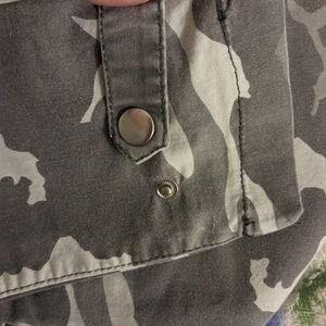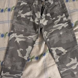 grey camouflage..snaps at bottom of legs ..size 7/8