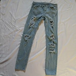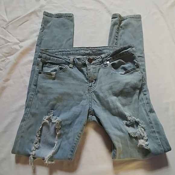 Distressed whitewashed skinny jeans. Size 5/6