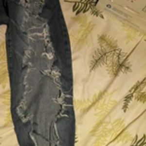 00 VIP Jeans heavily destressed and ripped up. They are to small for me. Have been worn a lot but very well taken care of no discoloration or other rips other then what was made by manufacturers.