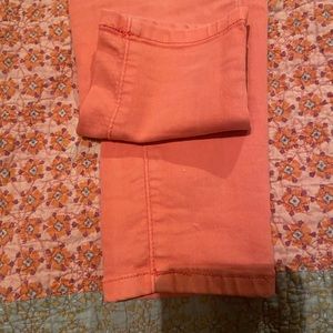V.I.P Jeans they are a size 9/10 pink/coral color!! They are made of 76% cotton, 22% Terylene and 2% Spandex.. Really comfortable!!! Inseam is 28 1/2!!!