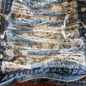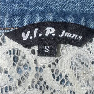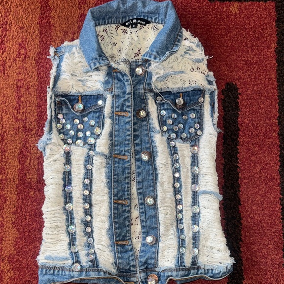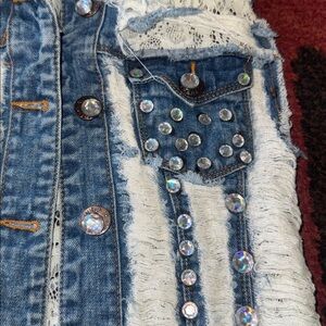 VIP Jeans Custom Rhinestone Jean Vest Size Small Lace inside - rhinestones - very cute