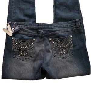 V.I.P. Jeans Distressed Dark Wash Embellished Pocket Skinny Jeans Size 15/16 NEW