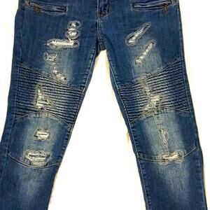 VIP Jeans Women Sz 11 12 Blue Fancy Distressed Skinny Fray Boho Hip Hop Designer