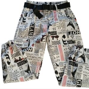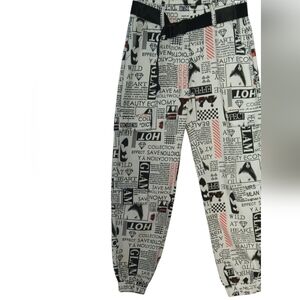 V.I.P. Joggers Canvas Pants Bold Graphic Print Belt Pockets Elastic Waist