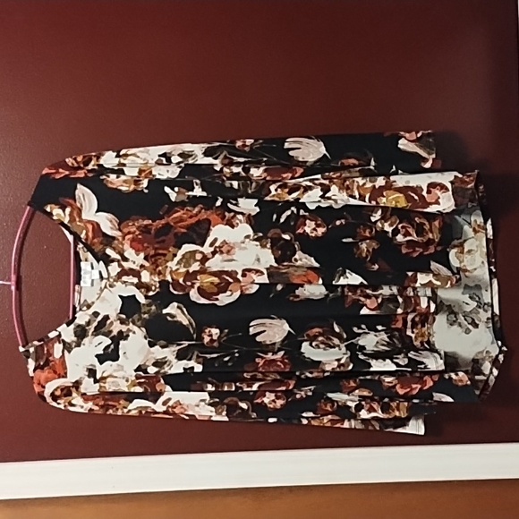 gently used great condition Size 14/16 small V neck long sleeve very fallish burgundy, burnt orange, cream, black , brown pullover shirt pit to pit 26 length in front 26 hangs lower in back 32