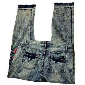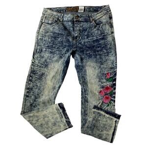 V.I.P Y2K Jeans Teen/Youth Size 16W Embroidered Floral Acid Wash Raw Hem Denim