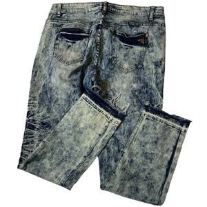 V.I.P Y2K Jeans Teen/Youth Size 16W Embroidered Floral Acid Wash Whiskers Raw Hem Distressed Stretch Denim