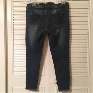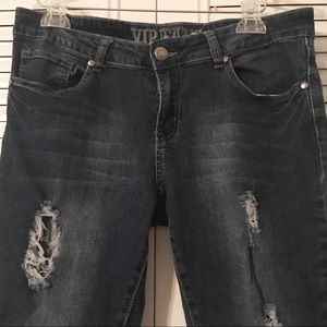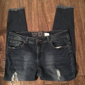 VIP destroyed raw hem medium dark wash jean in like new condition. Tag say it’s 13/14 but I’m size 8 and it fits perfect.