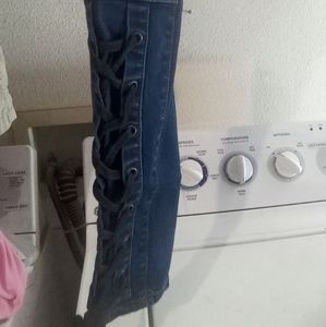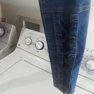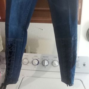 ladies size 5/6 cotton spandex skinny jeans with lace up bottoms on front side and solid jean on rear side..New condition
