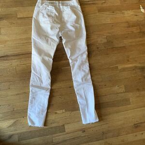 VIP Jeans white distressed jeans cropped edging. Size is 5/27. Measurements are done flat and are approximate.