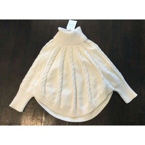 VIRGIL KIDS GIRLS TURTLENECK FALL PONCHO CABLE KNIT SWEATER 5T 110cm Cream ivory Cape with sleeves