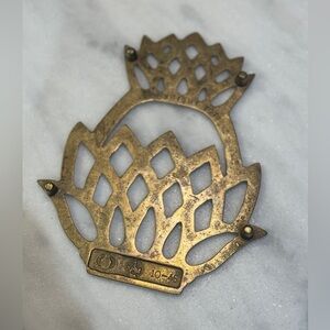 VIRGINIA METALCRAFTERS (VM) Vintage 70s Newport Pineapple Brass Trivet 1976. Beautiful piece that’s functional. Measures approximately 7”x5”.