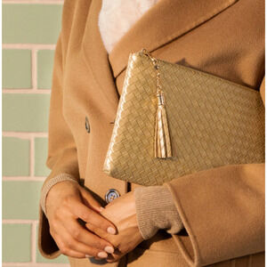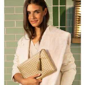 VIRGINIA WOLF Mimi Woven Pouch Metallic Gold Vegan Leather Curateur Rachel Zoe
