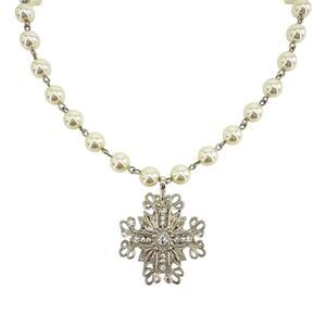 VIRGINS SAINTS & ANGELS Iconic Cream 8mm Pearl Choker & Electra Cross Medallion