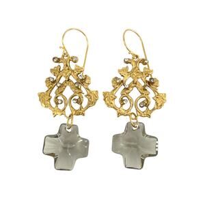 VIRGINS SAINTS & ANGELS VSA Vine Earrings with Cross in Gold & Black Diamond