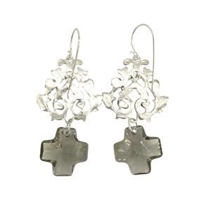 VIRGINS SAINTS & ANGELS VSA Vine Earrings with Cross in Silver & Black Diamond