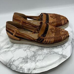 VISAR Mexican Leather Brown and Tan Huaraches Flats-9.5