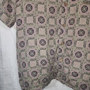 VISITOR sz Xl gray/ lavender short sleeve button front casual shirrt