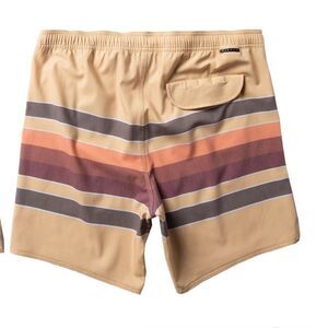 The Fist Bump is all it takes, the best 4-Way stretch surf trunks with an easy-access elastic waistband and stripes. Made for comfort and performance with an eco-friendly blend of coconut fibers, recycled polyester Repreve and cotton. Featuring engineered printed fabric with caliper scalloped hem back pocket and integrated key rope. This trunk features on-seam pockets and a shorter 17.5" outseam.