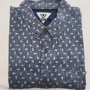 VISSLA Men's Blue Patterned Cotton Button-down Collared Shirt Casual XL