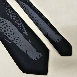 VITALIANO PANCALDI SILK TIE LUXURY BLACK PANTHER GRAY PATTERN SMOOTH 3.5" ITALY