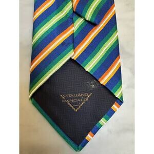VITALIANO PANCALDI Tie Mens 100% Silk Blue Green Gold Designer Necktie 60”X 4”