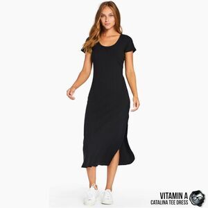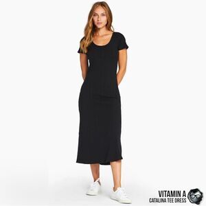 VITAMIN A CATALINA TEE LONG DRESS IN BLACK ORGANIC COTTON STRETCHY RIB KNIT MIDI