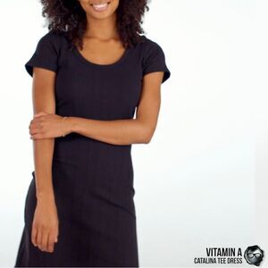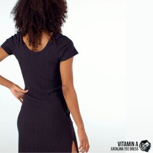 Vitamin A Catalina Midi T-Shirt Dress in Black Ribbed Organic Cotton