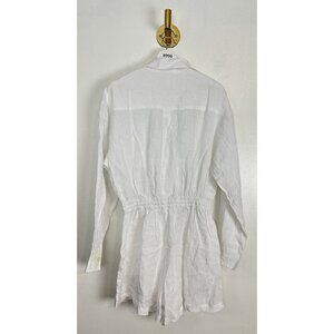 VITAMIN A Getaway Long Sleeve Linen Cover-Up Romper in White Eco Linen Large