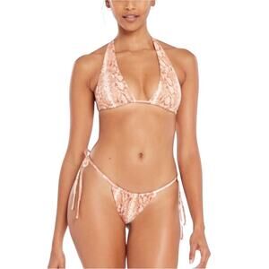 - Top adjustable to wear as a triangle, halter, bandeau or wrap top- there are pic. Cheekiest tie side bottom is fully adjustable to fit your mood. Made in California from plant based and recycled materials. Super Natural. Stretchy.