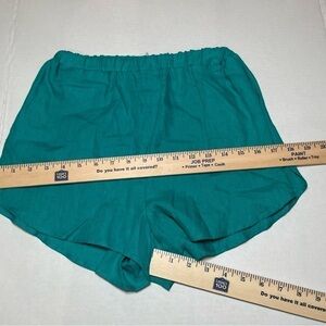 VITAMIN A Tallows Short 100% Linen in Aqua Curved Hem Pockets Pull On Size XS