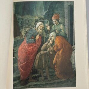 Black quarter cloth with silver foil lettering on spine over black pin-stripped boards. 8" x 5" Illustrated with a color frontispiece painting titled: Farewell of Saint John the Baptist from His Parents by Fra Filippo Lippi. Mylar-protected pictorial dust jacket (unclipped) with details of Renaissance Florentine portraits front and rear.