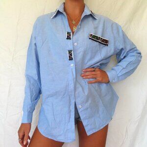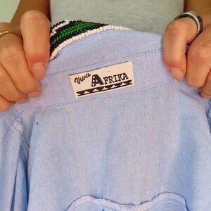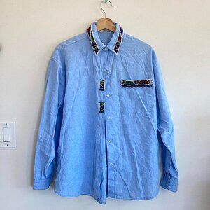 VIVA AFRIKA BLUE BEADED NATIVE AMERICAN BUTTON DOWN TOP WOMENS XL