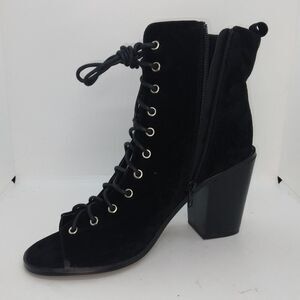 VIVA Womens NEW w/Box Full Open Front Black Laceup Boots & Block Heel - sz. 10