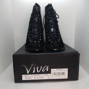VIVA Womens NEW w/Box Full Open Front Black Laceup Boots & Block Heel