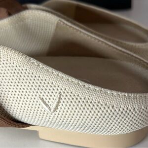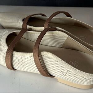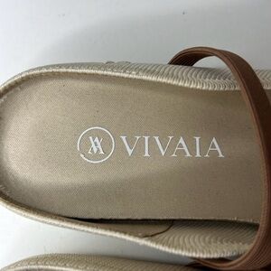 VIVAIA 9.5 EUR 40, Elle Pointed Toe Mules, Trending, Recycled, Avant Garde, Chic; Artemisia Herbal Soles, Brown straps with Beige body. Excellent condition, gently pre-loved. No visible signs of wear.