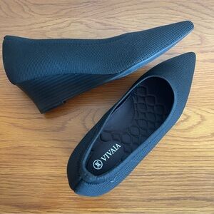 VIVAIA Aria Pointed Toe Wedge Black Size 39/8