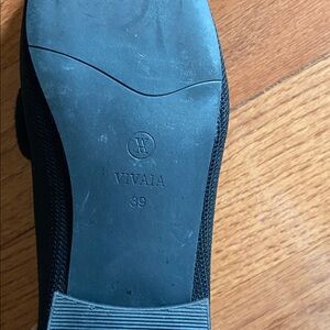 Stylish black loafers featuring a unique braided detail. Perfect for any occasion. Vegan. Only worn a few times.