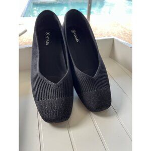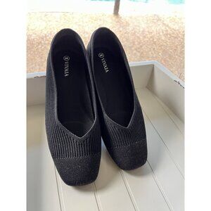 VIVAIA Black Margot 2.0 Square Toe Flat Sz 37.5w US 7