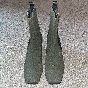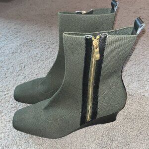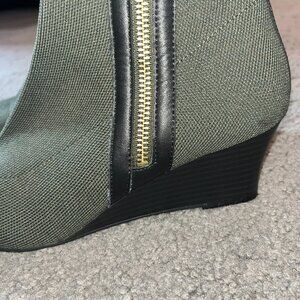 VIVAIA MICAELA WATER REPELLENT ZIPPER SQUARE TOE WEDGE BOOTS - OLIVE GREEN - EUC