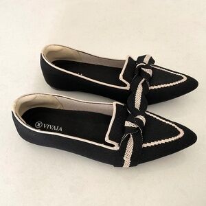 VIVAIA Michelle Slip On Loafer Pointed Toe Bow Black Ivory Size 39.5 NWOT