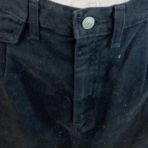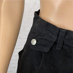 What could be more necessary as a closet staple than a black denim skirt--the ultimate closet staple! This versatile and comfy piece will effortlessly elevate your style. With its side pockets and belt loops, you can easily switch up your look in seconds from cowboy chic to urban cool. This basic yet reliable skirt is a must-have for any fashionista.