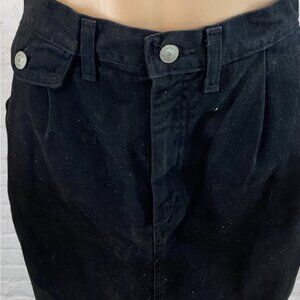 VIVALDI -- Black Denim Skirt with Two Side Pockets, Zip/Button Front