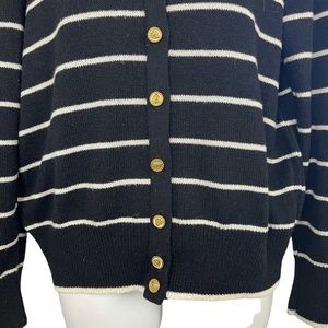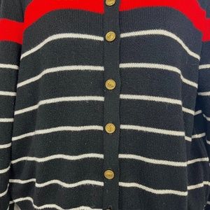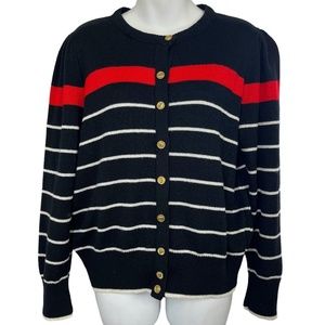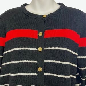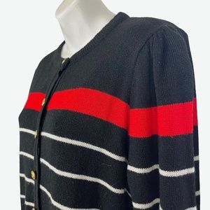 VIVANTI Vintage Made in USA Cardigan Striped Black White Red Knit Sweater sz 14