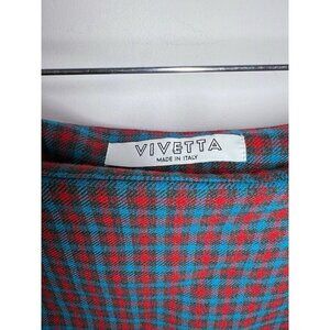VIVETTA Skirt Women's 46 Red Blue Plaid Heart Made In Italy Whimsy Asymmetrical