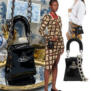 🆕 VIVIENNE WESTWOOD 🧿 NWOT Black Patent Leather Kelly Small Top Handle - AUTH