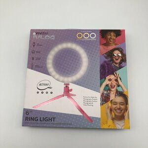 VIVITAR 6" Vlogging Ring Light & 7" Tabletop Tripod w Adjustable Ball Head, Pink