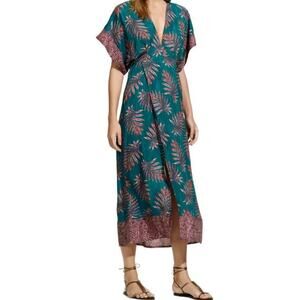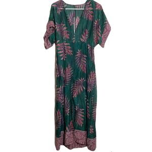 VIX Paula Hermanny Dione Caftan Coverup Faux Wrap Leaves Green Small NWOT